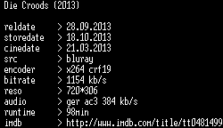 | FiLENAME: | Die.Croods.2013.German.BDRip.x264-CONTRiBUTiON.mkv |
