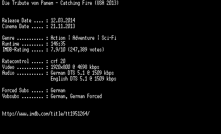 | FiLENAME: | Die.Tribute.von.Panem.Catching.Fire.German.DL.1080p.BluRay.x264-EXQUiSiTE.mkv |