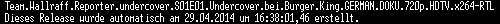 | FiLENAME: | Team.Wallraff.Reporter.undercover.S01E01.Undercover.bei.Burger.King.GERMAN.DOKU.720p.HDTV.x264-RTL.mkv |