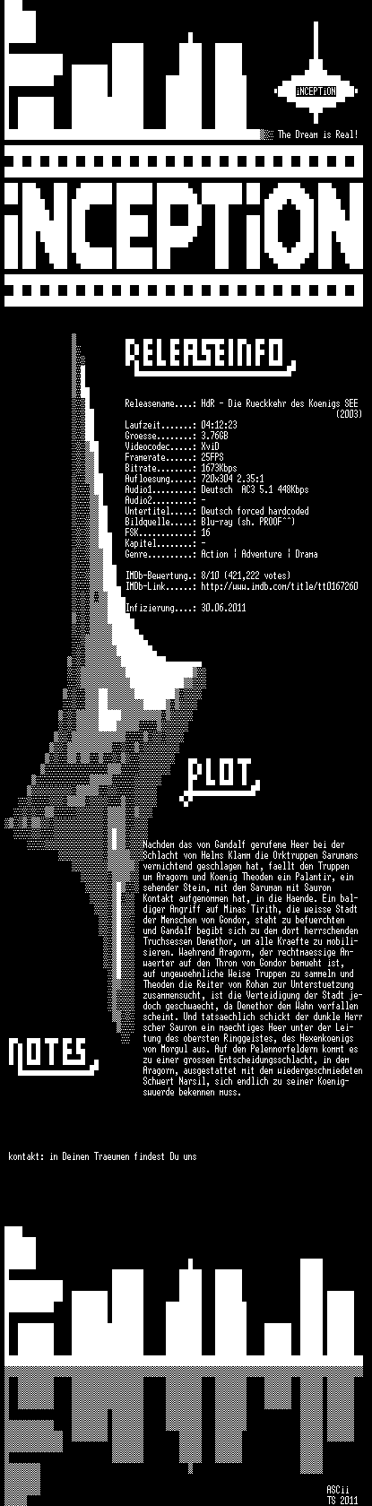 | FiLENAME: | Der.Herr.der.Ringe.3.Die.Rueckkehr.des.Koenigs.SEE.2003.German.AC3.BDRip.XviD-iNCEPTiON.avi |