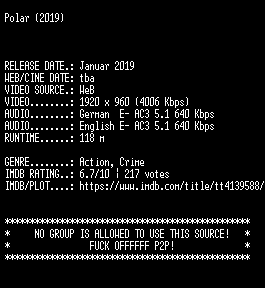 | FiLENAME: | Polar.2019.German.DL.1080p.WebHD.x264-SLG.mkv |