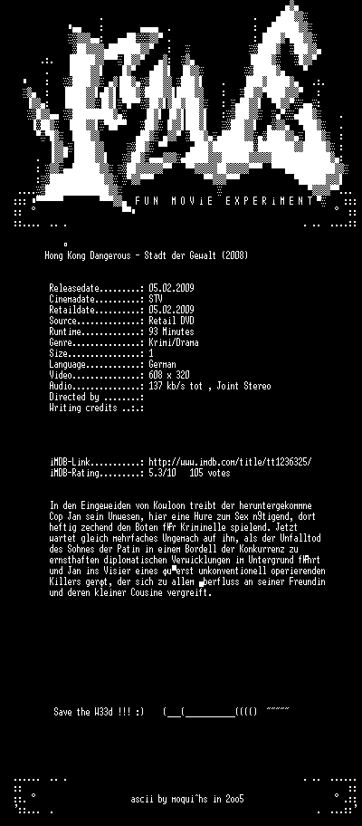 | FiLENAME: | Hong Kong Dangerous (2008) [GER WS DVD].avi |