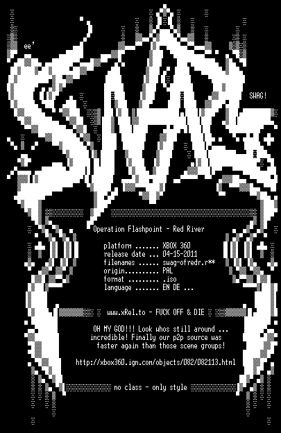 | FiLENAME: | Operation.Flashpoint.Red.River.XBOX360-SWAG.iso |