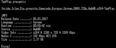 | FiLENAME: | Inside.Islam.Die.groesste.Gemeinde.Europas.German.DOKU.720p.WebHD.x264-TeePfau.mkv |