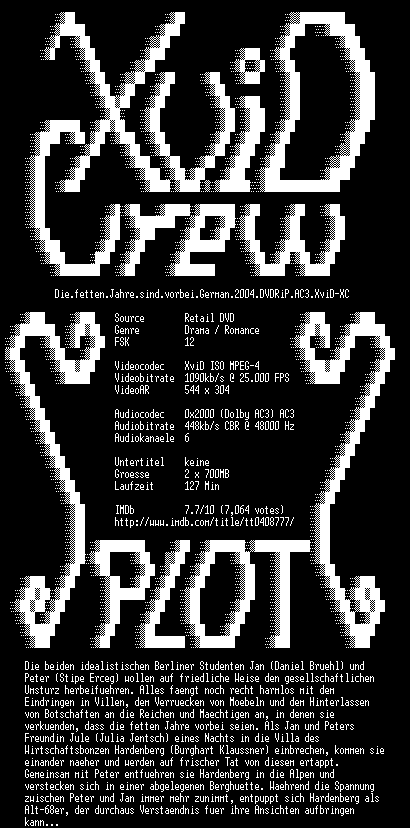 | FiLENAME: | Die.fetten.Jahre.sind.vorbei.German.2004.DVDRiP.AC3.XviD-XC.CD2.avi |