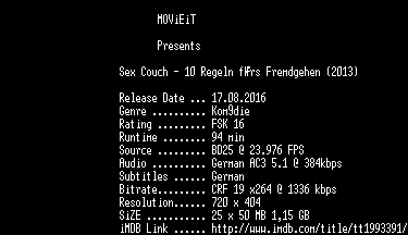 | FiLENAME: | Sex.Couch.10.Regeln.fuers.Fremdgehen.German.2013.AC3.BDRip.x264-MOViEiT.mkv |