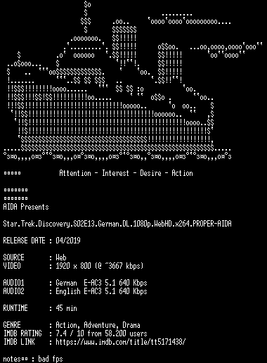 | FiLENAME: | Star.Trek.Discovery.S02E13.German.DL.1080p.WebHD.x264.PROPER-AIDA.mkv |