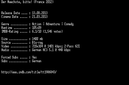 | FiLENAME: | Der.Naechste.bitte.German.AC3.BDRiP.XViD-EXQUiSiTE.avi |
