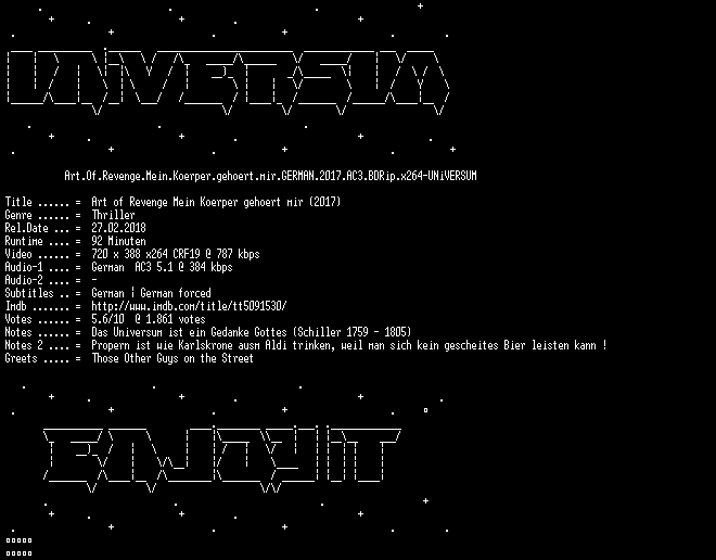 | FiLENAME: | Art.Of.Revenge.Mein.Koerper.gehoert.mir.GERMAN.2017.AC3.BDRip.x264-UNiVERSUM.mkv |