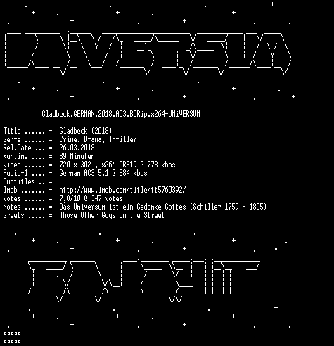 | FiLENAME: | Gladbeck.GERMAN.2018.AC3.BDRip.x264-UNiVERSUM.mkv |