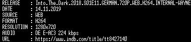 | FiLENAME: | Into.The.Dark.2018.S01E11.GERMAN.720P.WEB.H264.INTERNAL-WAYNE.mkv |