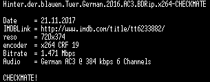 | FiLENAME: | Hinter.der.blauen.Tuer.German.2016.AC3.BDRip.x264-CHECKMATE.mkv |