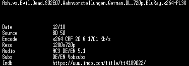 | FiLENAME: | Ash.vs.Evil.Dead.S02E07.Wahnvorstellungen.German.DL.720p.BluRay.x264-PL3X.mkv |