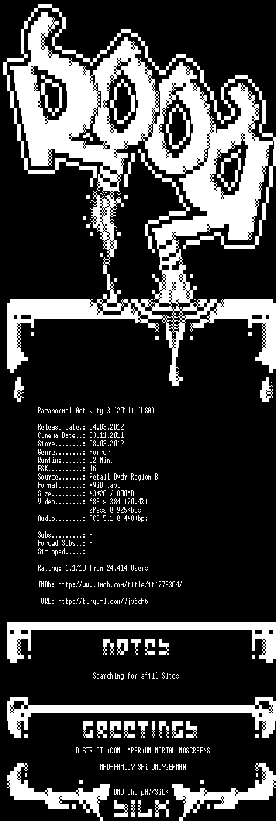 | FiLENAME: | Paranormal.Activity.3.German.AC3.DVDRiP.XViD-ROOR.avi |