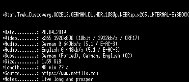 | FiLENAME: | Star.Trek.Discovery.S02E13.GERMAN.DL.HDR.1080p.WEBRip.x265.iNTERNAL-EiSBOCK.mkv |
