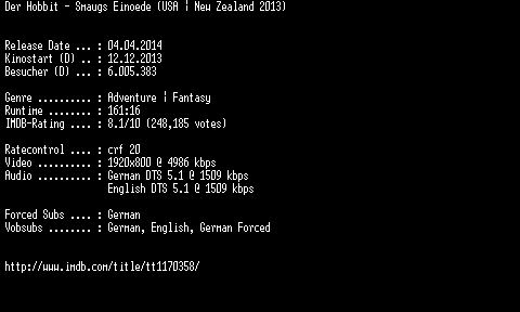 | FiLENAME: | Der.Hobbit.Smaugs.Einoede.German.DL.1080p.BluRay.x264-EXQUiSiTE.mkv |
