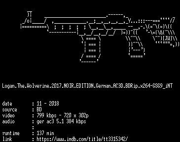 | FiLENAME: | Logan.The.Wolverine.2017.NOIR.EDITION.German.AC3D.BDRip.x264-GSG9_iNT.mkv |