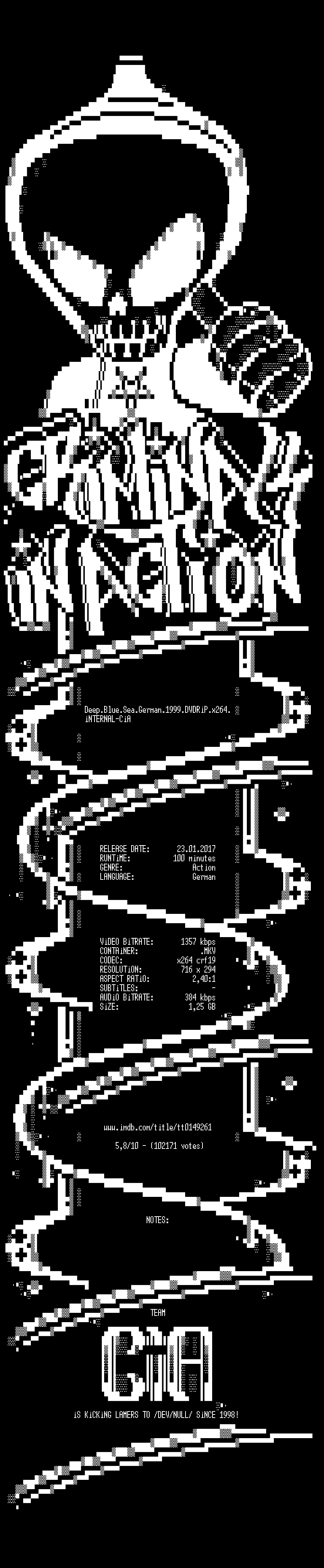 | FiLENAME: | Deep.Blue.Sea.German.1999.DVDRiP.x264.iNTERNAL-CiA.mkv |