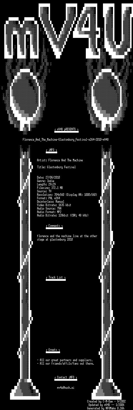 | FiLENAME: | Florence_And_The_Machine-Glastonbury_Festival-x264-2010-mV4U.mkv |