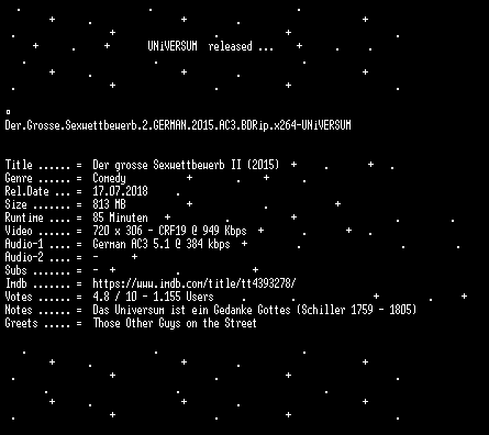 | FiLENAME: | Der.Grosse.Sexwettbewerb.2.GERMAN.2015.AC3.BDRip.x264-UNiVERSUM.mkv |