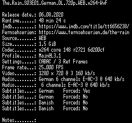 | FiLENAME: | The.Rain.S03E01.German.DL.720p.WEB.x264-WvF.mkv |