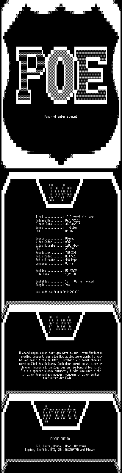 | FiLENAME: | 10.Cloverfield.Lane.2016.BDRip.AC3.German.x264-POE.mkv |