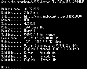 | FiLENAME: | Sonic.the.Hedgehog.2.2022.German.DL.1080p.WEB.x264-WvF.mkv |