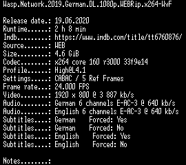 | FiLENAME: | Wasp.Network.2019.German.DL.1080p.WEBRip.x264-WvF.mkv |