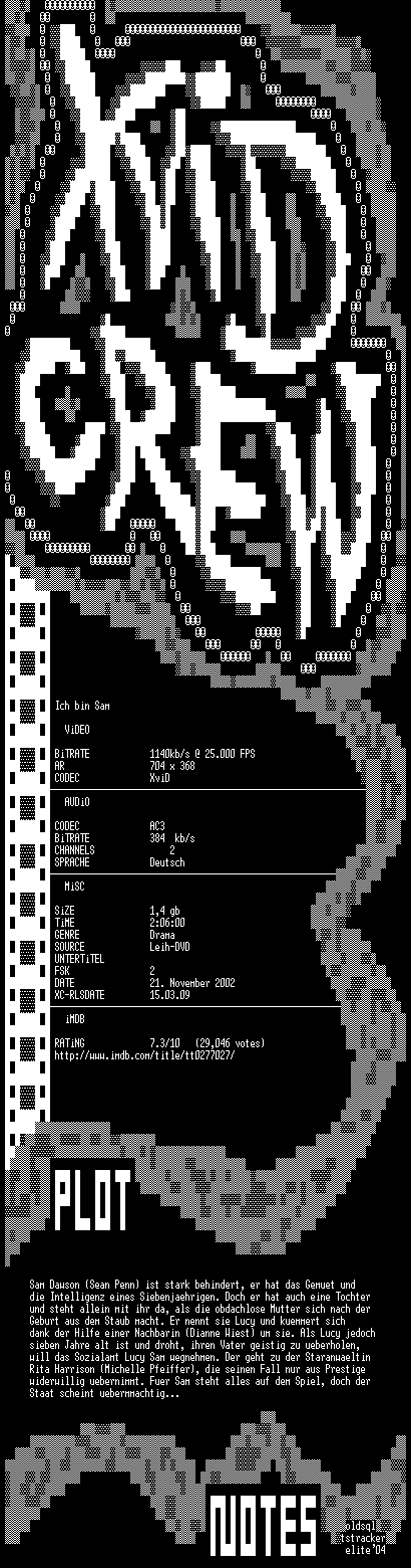 | FiLENAME: | Ich bin Sam (2001) [GER-AC3 WS DVD].avi |