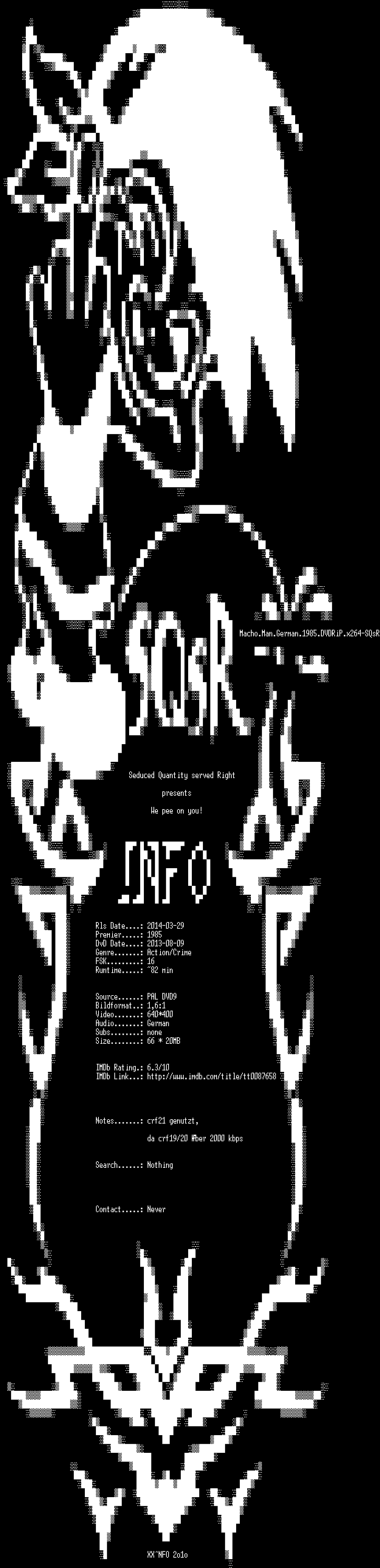 | FiLENAME: | Macho.Man.German.1985.DVDRiP.x264-SQsR.mkv |