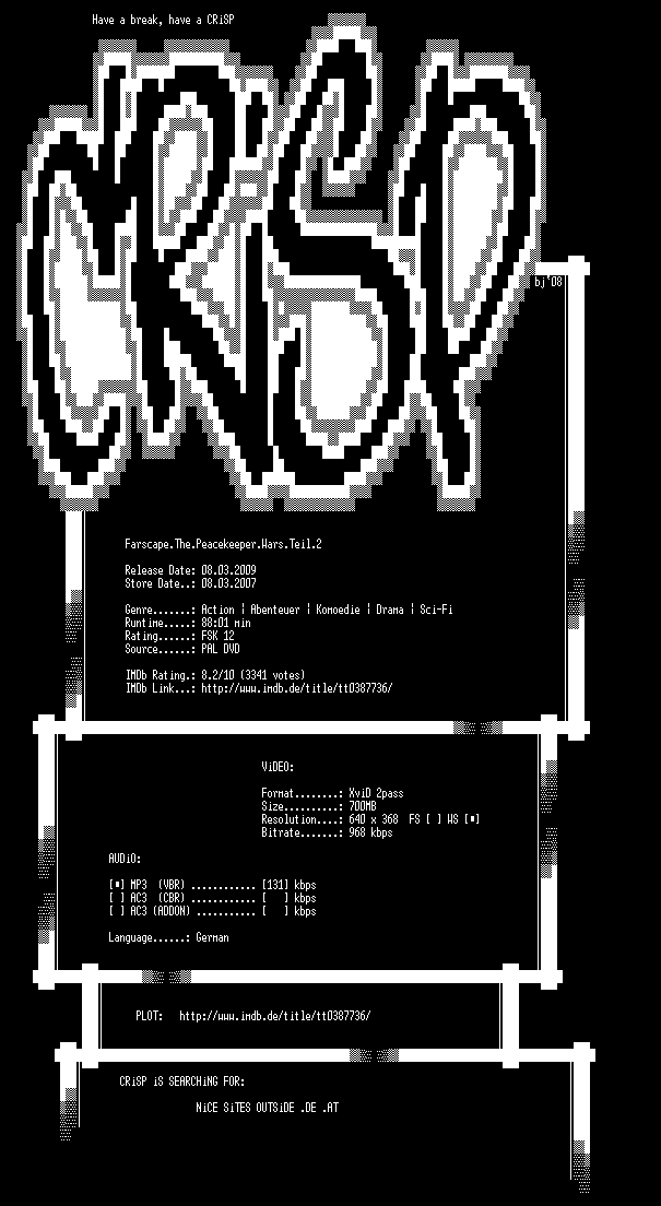 | FiLENAME: | Farscape - The Peacekeeper Wars - Teil 2 (2004) [GER WS DVD].avi |
