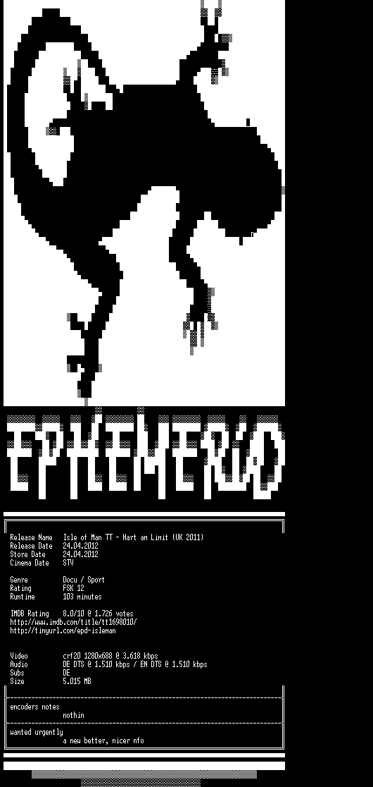 | FiLENAME: | Isle.of.Man.TT.Hart.am.Limit.2011.German.DL.720p.BluRay.x264-EPHEMERiD.mkv |