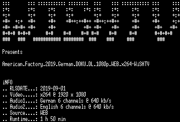 | FiLENAME: | American.Factory.2019.German.DOKU.DL.1080p.WEB.x264-WiSHTV.mkv |