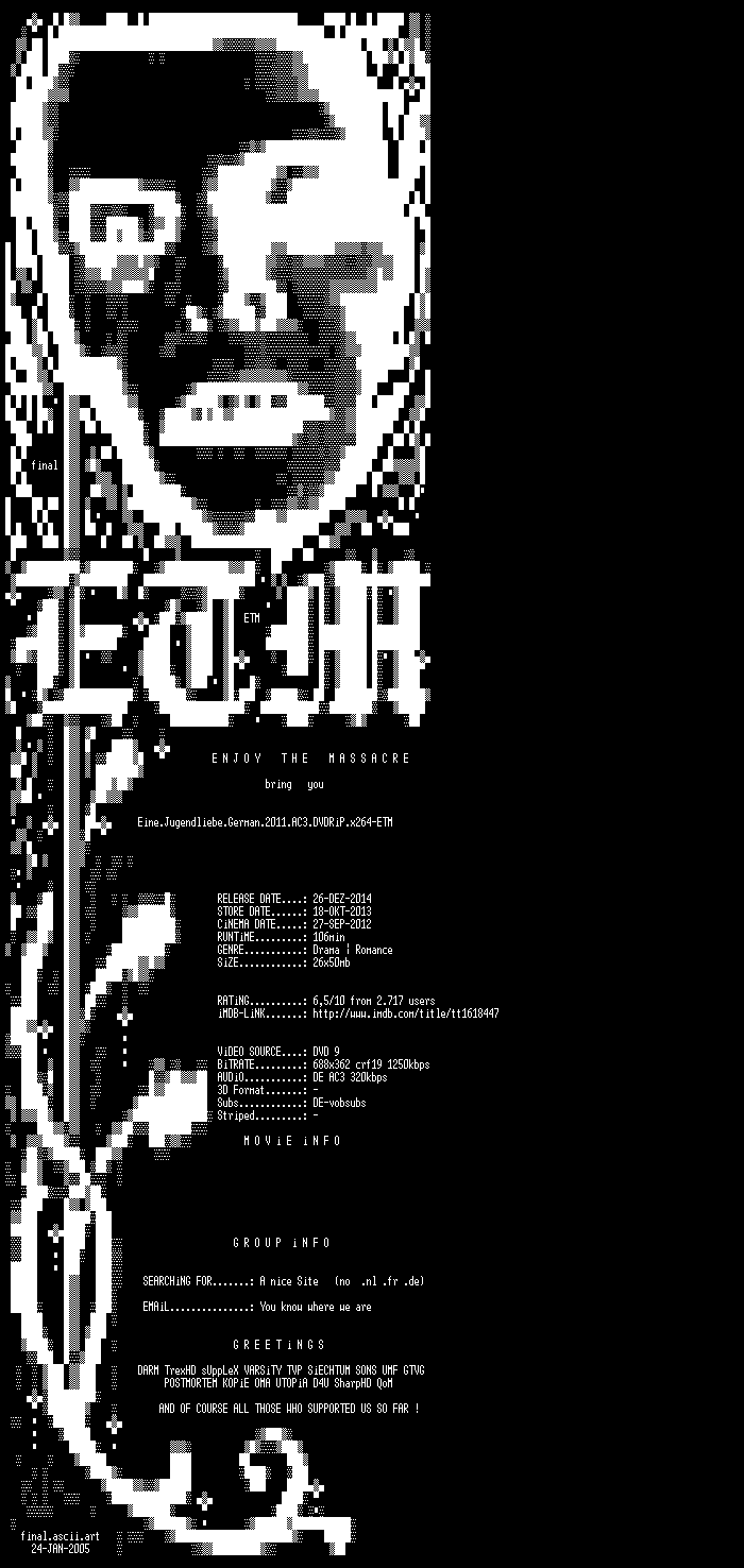 | FiLENAME: | Eine.Jugendliebe.German.2011.AC3.DVDRiP.x264-ETM.mkv |