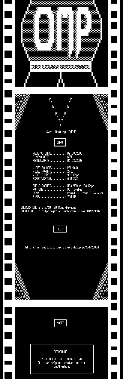 | FiLENAME: | Sweet.Destiny.German.2004.DVDRiP.XviD-OMP.avi |
