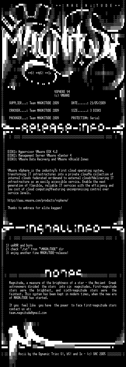 | FiLENAME: | VMware vSphere v4 DVD1 Hypervisor VMware ESX 4.0-MAGNiTUDE.iso |