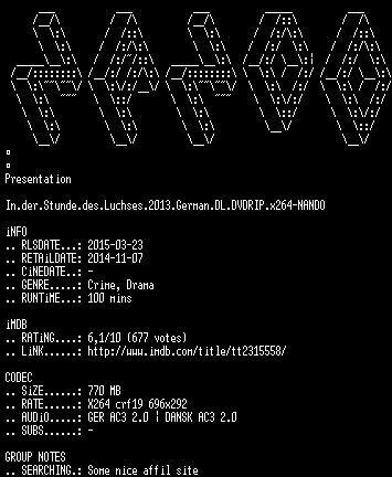 | FiLENAME: | In.der.Stunde.des.Luchses.2013.German.DL.DVDRIP.x264-NANDO.mkv |