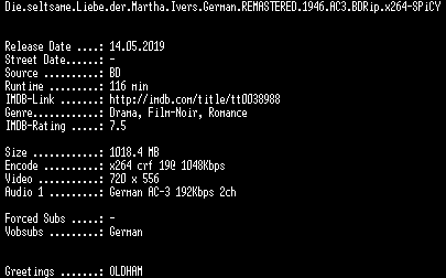| FiLENAME: | Die.seltsame.Liebe.der.Martha.Ivers.German.REMASTERED.1946.AC3.BDRip.x264-SPiCY.mkv |