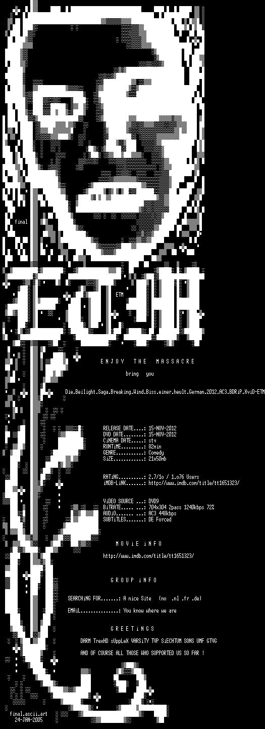 | FiLENAME: | Die.Beilight.Saga.Breaking.Wind.Biss.einer.heult.German.2012.AC3.BDRiP.XviD-ETM.avi |