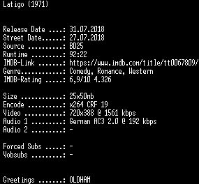| FiLENAME: | Latigo.German.1971.AC3.BDRip.x264-SPiCY.mkv |