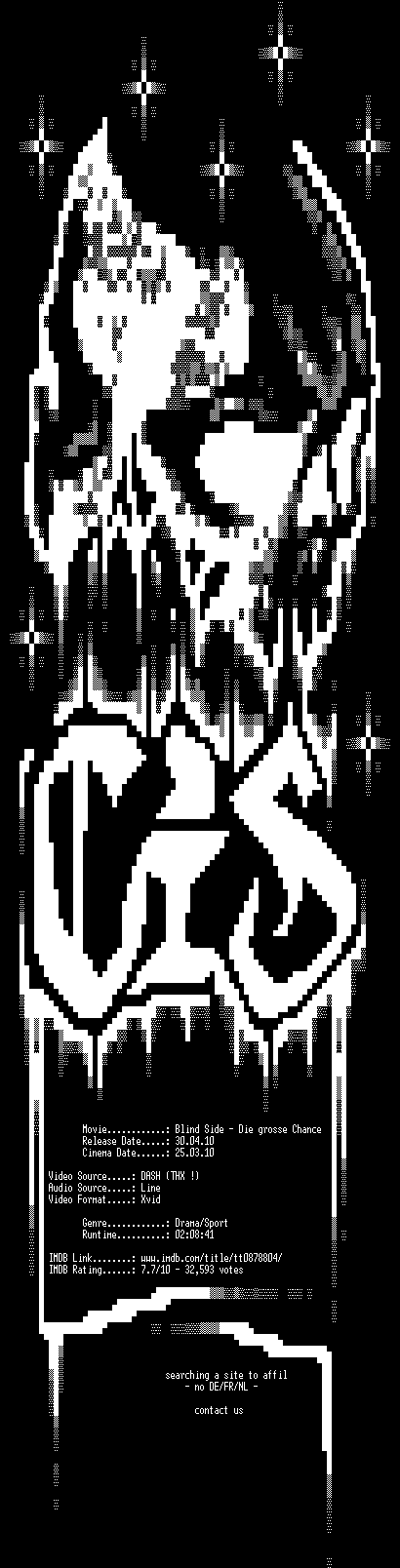 | FiLENAME: | Blind.Side.Die.grosse.Chance.DVDRiP.LD.German.XViD-CIS.CD1.avi |