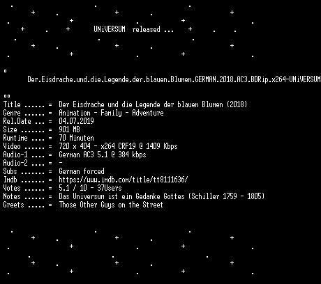 | FiLENAME: | Der.Eisdrache.und.die.Legende.der.blauen.Blumen.GERMAN.2018.AC3.BDRip.x264-UNiVERSUM.mkv |