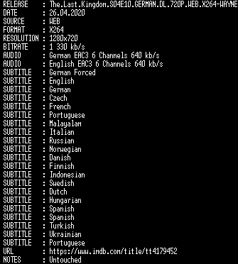 | FiLENAME: | The.Last.Kingdom.S04E10.GERMAN.DL.720P.WEB.X264-WAYNE.mkv |