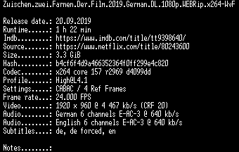| FiLENAME: | Zwischen.zwei.Farnen.Der.Film.2019.German.DL.1080p.WEBRip.x264-WvF.mkv |
