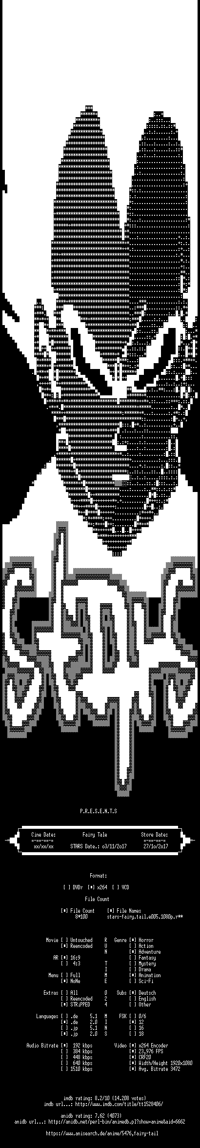 | FiLENAME: | Fairy.Tail.E005.Die.Magierin.mit.der.Ruestung.German.2009.ANiME.DL.1080p.BluRay.x264-STARS.mkv |
