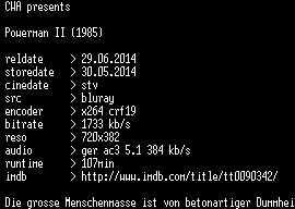 | FiLENAME: | Powerman.II.1985.German.BDRip.x264.iNTERNAL-CWA.mkv |