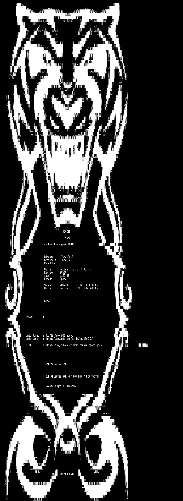 | FiLENAME: | 2012.Zombie.Apocalypse.German.2011.AC3.BDRiP.XviD-R0CKED.avi |