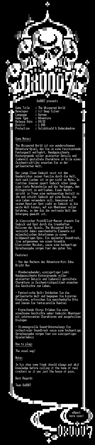 | FiLENAME: | The.Whispered.World.GERMAN-0x0007.iso |