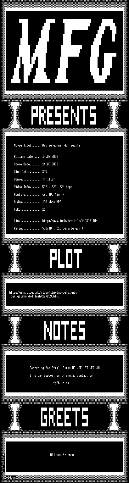 | FiLENAME: | Das.Geheimnis.der.Geisha.German.2008.DVDRiP.XViD-MFG.avi |