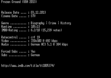 | FiLENAME: | Frozen.Ground.German.2013.BDRiP.x264-EXQUiSiTE.mkv |